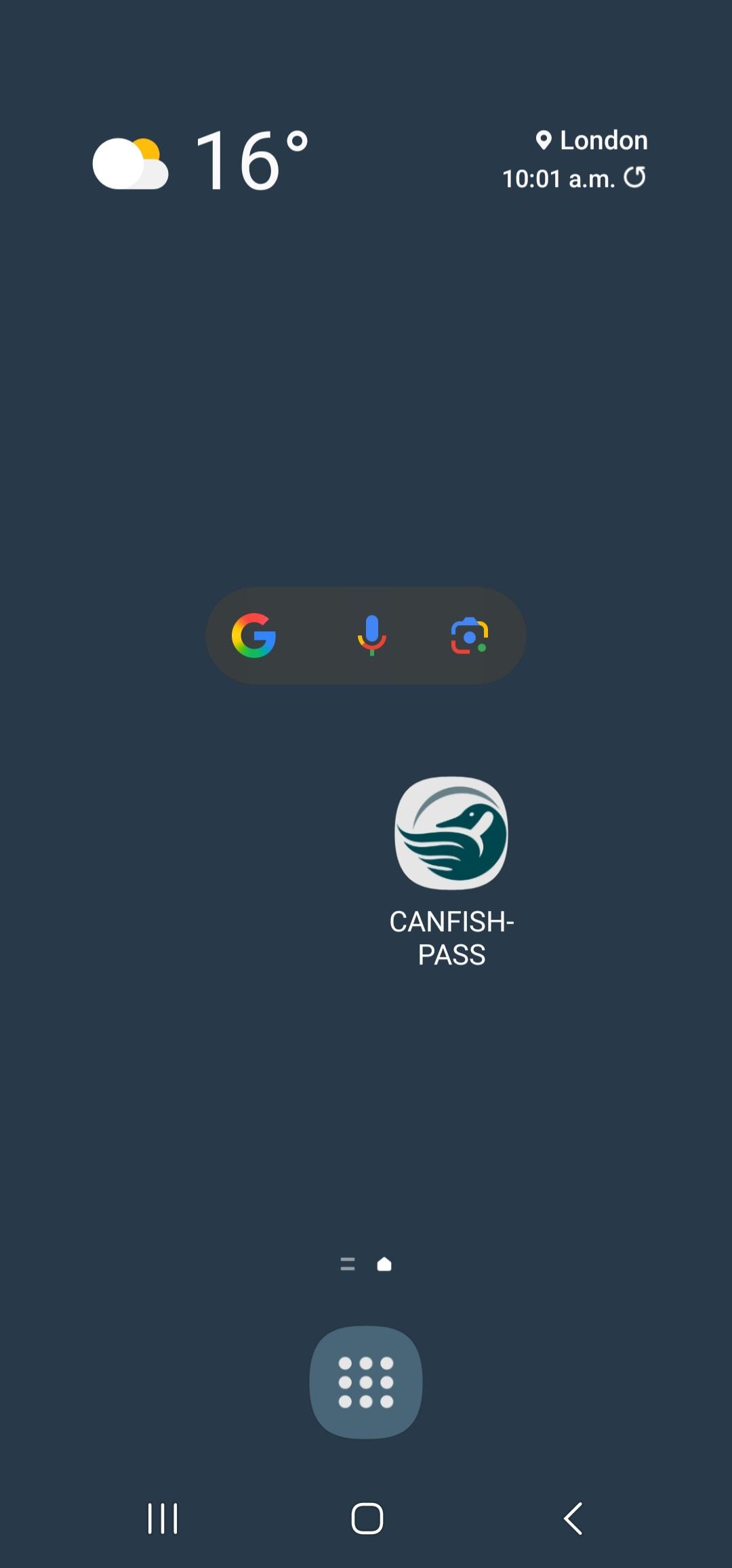 You can download the mobile app (CANFISHPASS) from the Google Play store. Once installed, the app will be accessible on your phone with the CWF logo as the app icon.